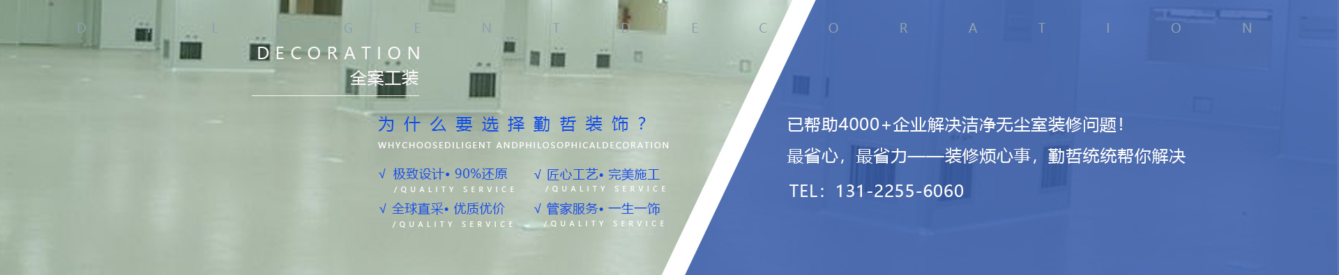 后期服務保障,免去裝修的所有后顧之憂讓您放心更省心;用品質說話,超長售后,為每一個項目提供高效優(yōu)質服務,上海潔凈車間裝修信賴于勤哲裝飾。